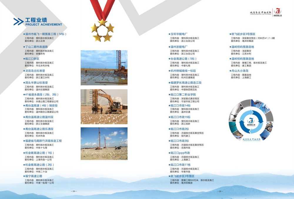 本公司專(zhuān)業(yè)生產(chǎn)“瑞建”牌塑料排水板系列產(chǎn)品,產(chǎn)品規(guī)格、型號(hào)齊全,能滿(mǎn)足各種軟土地基的加固處理等。產(chǎn)品質(zhì)量經(jīng)國(guó)家權(quán)威機(jī)構(gòu)檢測(cè),各項(xiàng)指標(biāo)均超過(guò)國(guó)家標(biāo)準(zhǔn)和工程設(shè)計(jì)技術(shù)要求。質(zhì)量穩(wěn)定性和技術(shù)創(chuàng)新居國(guó)內(nèi)同行業(yè)首位;并通過(guò)省級(jí)技術(shù)成 果鑒定。產(chǎn)品銷(xiāo)往國(guó)內(nèi)各省市及國(guó)外,深受用戶(hù)的歡迎和好評(píng)。在多項(xiàng)重點(diǎn)工程中被建設(shè)單位(業(yè)主)評(píng)為指定產(chǎn)品。